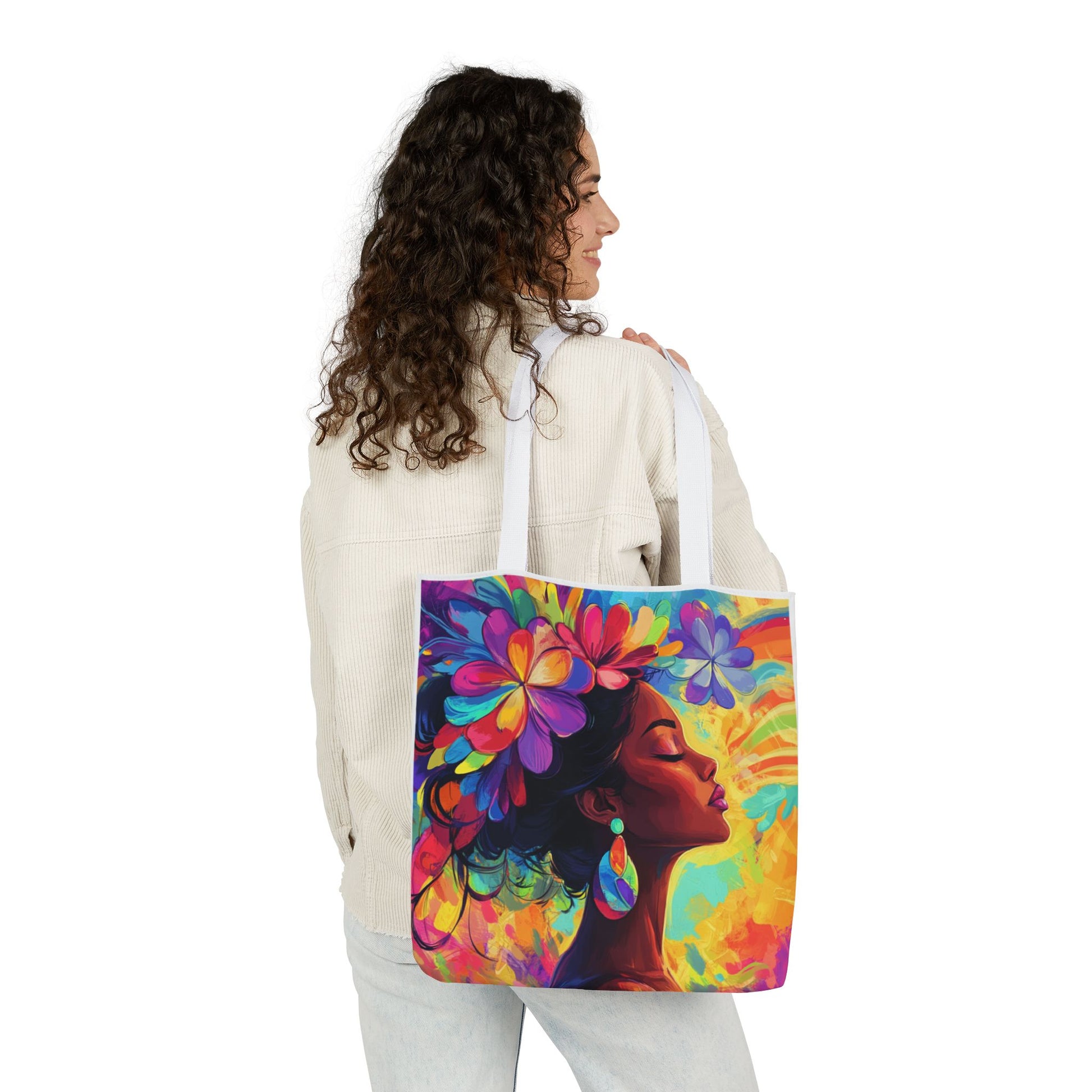 Elevate your style and showcase your personality with this stunning Canvas Tote Bag. Featuring a breathtaking design that bursts with vibrant colors, this bag exudes a joyful and artistic vibe, perfect for carrying your essentials while making a statement. Its spacious interior and boxed corners offer extra room, making it ideal for daily activities, beach trips, or farmers' markets. This tote bag is perfect for creative souls, art lovers, or anyone looking to add a splash of color to their lives. It makes a thoughtful gift for birthdays, Mother’s Day, or just because! Whether you're headed to a picnic or doing errands, this tote will keep you in style all year round.